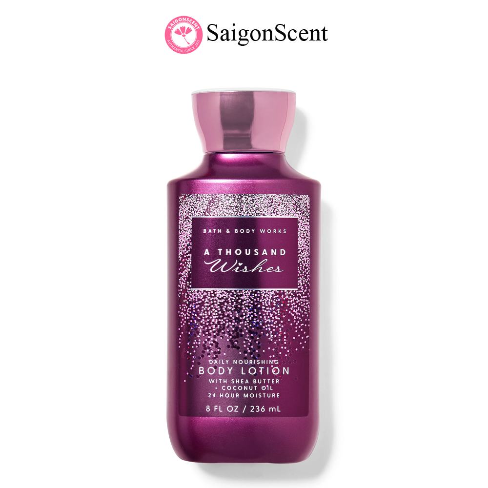 - Tips: Dùng Sữa tắm Bath & Body Works Shower Gel A THOUSAND WISHES trước khi sử dụng lotion và sau đó dùng kèm Xịt thơm toàn thân Bath & Body Works Body Mist A THOUSAND WISHES lên quần áo sau khi tắm để giữ được mùi lâu hơn.