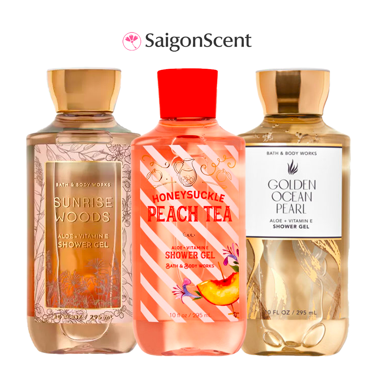 Bath & Body Works Shower Gel HONEYSUCKLE PEACH TEA mùi hương ngọt ngào từ đào và pha một chút vị đăng của trà