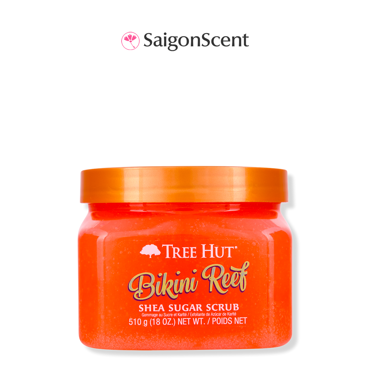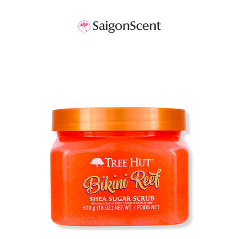 Tree Hut Shea Sugar Scrub BIKINI REEF Có mùi hương hoa ấm áp, lãng mạn với hương chủ đạo của Hoa Cam, nước Dừa và muối hồng Himalaya