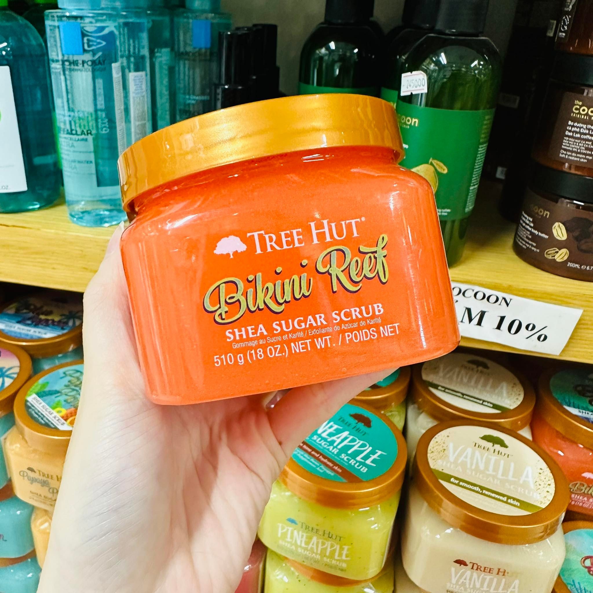 - Bước 2: Lấy một lượng vừa đủ Tree Hut Shea Sugar Scrub BIKINI REEF cho từng vùng da trên cơ thể.