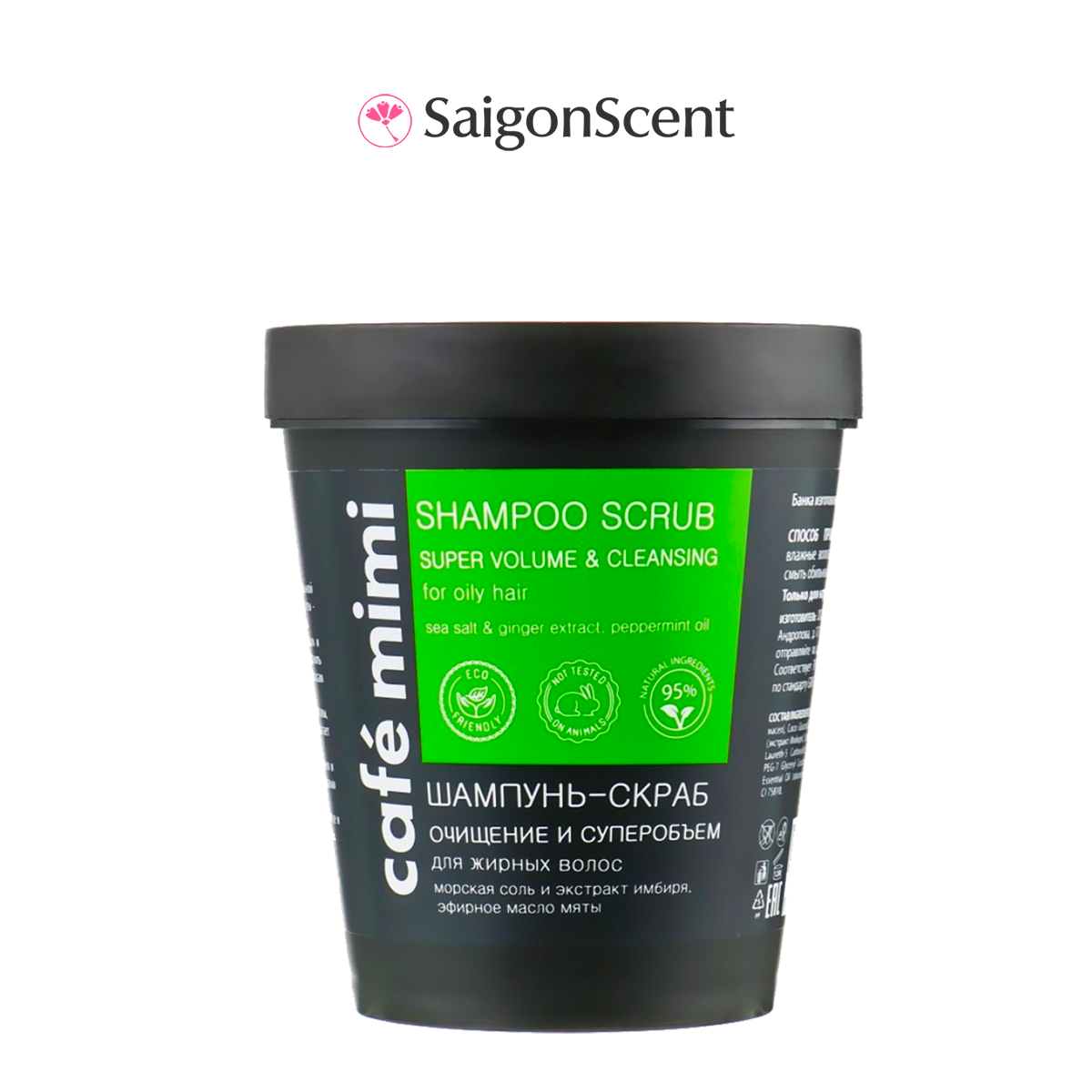Là sự kết hợp của muối biển (làm sạch sâu, giảm gàu), chiết xuất gừng (detox, làm khoẻ da đầu, hỗ trợ giảm rụng tóc, làm chắc tóc), dầu bạc hà (detox, làm sạch sâu, kiềm dầu, ngừa khuẩn), dầu dừa,